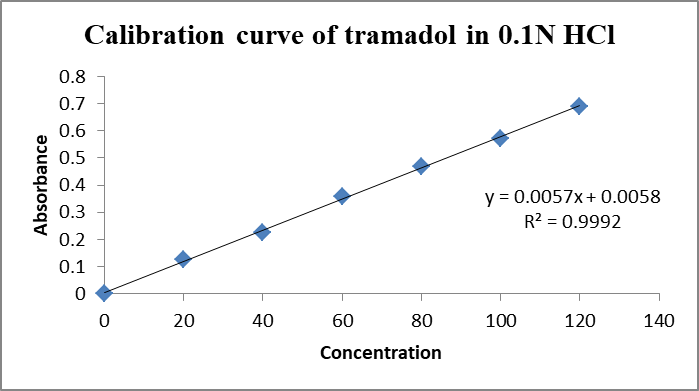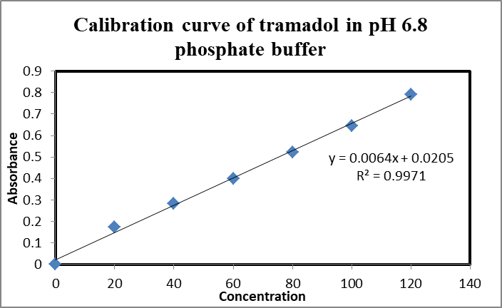 Calibration curve of tramadol in pH 6.8 phosphate buffer