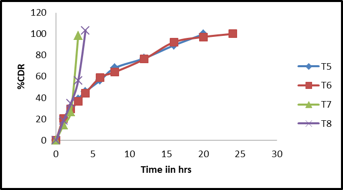 | Time(h) | T5(% of drug release)* | T6(% of drug release)* | T7 (% of drug release)* | T8(% of drug release)* |