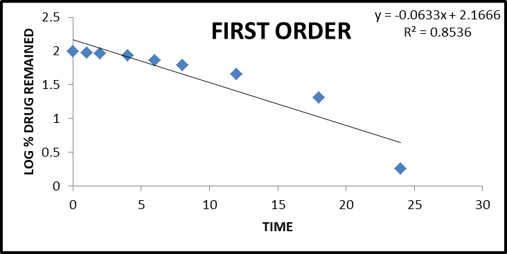 | % CDR Vs T | Log % drug Remain Vs Time | %CDR Vs √T | Log% of CDR Vs Log T | |