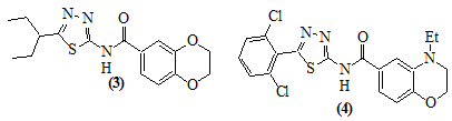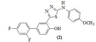 Kucukguzel et. al.2 have synthesized a series of 2-substituted-1,3,4-thiadiazoles and evaluated them for antinociceptive activity and found 5-(2ʹ,4ʹ-difluoro-4-hydroxy biphenyl-5-yl) -4-(4-methoxy phenyl)-1,3,4-thiadiazole (2) to be the most potent compound in the series exhibiting similar antinociceptive activity with the standard drug .