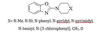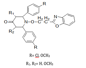 Kabilan et al. synthesized some novel benzoxazolyl ethoxypiperidones (Fig. 17) and screened for their antibacterial activity against Streptococcus faecalis, Bacillus subtilis, Escherichia coli, Staphylococcus aureus and Pseudomonas aeruginosa and antifungal activity against Candida albicans, Aspergillus niger, Candida-51 and Aspergillus flavus. Some compounds exerted potent in vitro antibacterial activity against Streptococcus faecalis while rest compounds exhibited potent in vitro antifungal activity against Candida-51 [23].