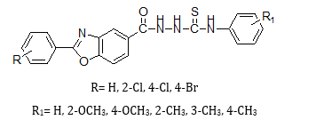 Yalcin et al. synthesized 5- substituted-2-cyclohexyl methyl benzoxazoles (Fig. 11) by the reaction of 2–hydroxy–5-substituted aniline and cyclohexyl carboxylic acid with sodium bicarbonate. The synthesized compounds showed moderate to good antibacterial and anti-fungal activity as compared to standard [18].