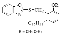 Rao et al. synthesized the series of 2-[[2-alkoxy-6-pentadecylphenyl (methyl)]thio]-1H benzoxazole (Fig. 28) and investigated their ability to inhibit human cyclooxygenase-2 enzyme which showed anti-inflammatory activity [34].