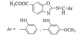 Srinivas et al. synthesized a series of methyl 2- (arylideneamino) benzoxazole -5-carboxylate derivatives (Fig. 30) by the reaction of Schiff bases of methyl 2-aminobenzoxazole-5-carboxylate with appropriate aromatic aldehydes. The chemical structures of the synthesized compounds were confirmed by means of IR, 1H NMR, mass spectral analysis and evaluated for COX-2 inhibitory activity. In conclusion, this class of compounds serves as remarkable class for COX-2 inhibition [36].
