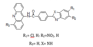 Sondhi et al. synthesized a series of N-(acridin-9-yl)-4-(benzo [d]imidazol/oxazol-2-yl) benzamides (Fig. 31) by the condensation of 9- amino acridine derivatives with benzoxazole derivatives. All these compounds were characterized by correct FT-IR, 1H NMR, MS and elemental analysis. These compounds were found to possess appreciable anti-inflammatory activity [37].