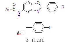 Akbay et al. synthesized 5-phenylacetamidosubstituted-2-phenylbenzoxazole derivatives (Fig. 36) by reaction of 5-amino substituted-2-phenylbenzoxazole and excess of thionyl chloride, sodium bicarbonate & diethyl ether in water. Derivative compounds inhibits reverse transcriptase (RT) activity, binding of the RT enzyme exhibiting IC50 values between 6.3×105 μ mol/1-0.34 μ mol/l and their activities were compared to standard drug such as 3’-azido-2’,3’-dideoxythymidine triphosphate and dideoxythymidine triphosphate. Since DNA topoisomerases are considered as important targets for cancer chemotherapy, the present findings may provide future opportunities to design and develop new chemotherapeutic agents [43].