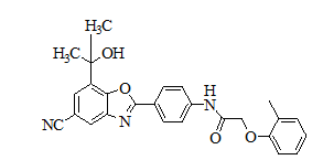 Smith et al. reported a series of 2-arylbenzoxazole as inhibitors of the cholesterol ester transfer protein (CETP). Structure–activity studies revealed variation of the substitution of the benzoxazole moiety. Substitution at the 5- and 7-positions of the benzoxazole moiety was found to be beneficial for CETP inhibition. While, compound N-{4-[5-Cyano-7-(1–hydroxy -1- methyl- ethyl)- benzoxazol-2-yl]-phenyl}-2-o-tolyloxy-acetamide (Fig. 38) was found to be the most potent inhibitor in this series and inhibited CETP with an IC50 of 28 Nm [45].