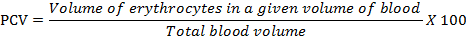 The packed cell volume (PCV) of each mouse was measured before infection and on day 4 after infection. For this purpose, blood was collected from tail of each mouse in heparinized microhaematocrit capillary tubes up to 3/4th of their length. The tubes were sealed by crystal seal and placed in a microhematocrit centrifuge (Hettichhaematokrit) with the sealed ends outwards. The blood was centrifuged at 12,000 rpm for 5 min. The volume of the total blood and the volume of erythrocytes were measured and PCV was calculated as: