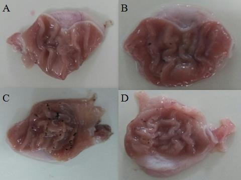 Fig. 2: Effect of phthalate analogue of diclofenac on anti-ulcer activity A-Group I, B-Group II, C-Group III and D-Group IV