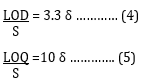 Where, δ: standard deviation of y-intercept and S: slope of calibration curve.