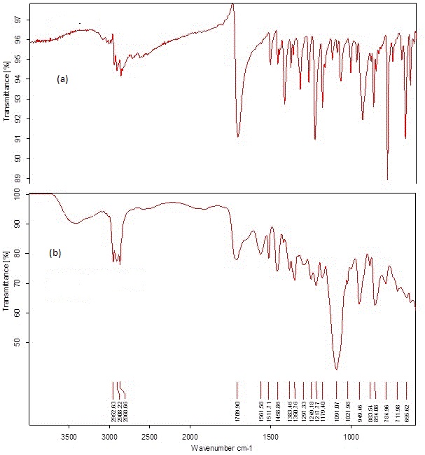 Fig. 2: IR spectrum of (a) pure ibuprofen and (b) formulation of ibuprofen