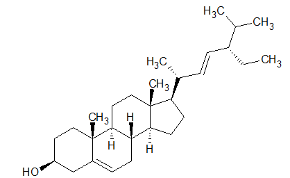 δ 140.8 (C-22), δ 130.1 (C-5), δ 129.1 (C-23), δ 121(C-6), δ 71.6 (C-3), δ 56.1 (C-4), δ 55.1 (C-5), δ 52.2(C-24), δ 0.10 (C-17), δ 43.8 (C-9), δ 41.2 (C-13), δ 39.4 (C-10), δ 37.7 (C-10), δ 33.4 (C-20), δ 31.7 (C-25), δ 29.1 (C-21), δ 28.1 (C-23), δ 25.1 (C-12), δ 21.8 (C-11, C-25, C-26), δ 15.1 (C-29), δ 12.8(C-27). |