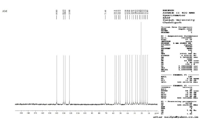Fig. 4: 13C-NMR spectra of the isolated lead compound