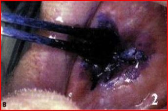 Fig. 1d: Retention of blue color, indicative of malignant lesion fig. reference 1a-1d-
