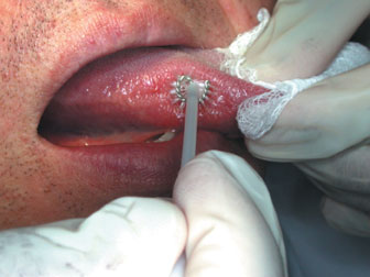 The patient is asked to rinse the mouth with the dye and the physician then inspects for the areas of blue staining. Depending on the degree of dysplasia, malignant lesions stain dark blue and dysplastic lesions stain different shades of blue [8]. Blue staining in a patient is indicative of biopsy. Occasionally, the normal mucosa may retain a small amount of dye, which can be wiped away with acetic acid. Rough or keratinous surfaces (e. g., the dorsum of the tongue, gingival crevices) may also retain the stain. Non-malignant areas of inflammation occasionally stain with toluidine blue. It is mandatory to re-stain all positive lesions within 14 days to decrease the false positive rate. Patients with previous carcinoma of the upper aero digestive tract can be screened with the use of TB. These patients are at high recurrence risk; therefore, clinicians may add toluidine rinses to their visual examination [8, 12]. TB is highly sensitive and moderately specific for malignant lesions, it is far less sensitive for pre-malignant lesions and a false negative rate of up to 58% has been reported. The various steps of TB staining are summarized in fig. 1a-d.