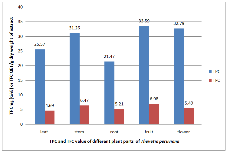 Fig. 1: Total phenol and flavonoids content in Thevetia peruviana