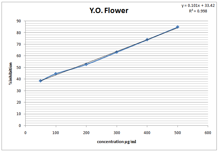 Results of the experiments are expressed as mean ±S. E. M. All experiments were repeated three times. IC50 Values, which is the concentration of the sample that is required to scavenge 50% of DPPH free radicals, were calculated by linear regression curve. Microsoft excel was used for statistical analysis.