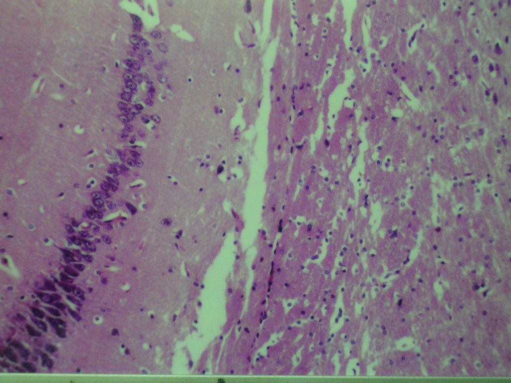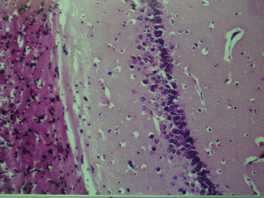Fig. 1: Micrograph of brain section of normal control rat showing normal morphological structure of the hippocampus (H& E X40)