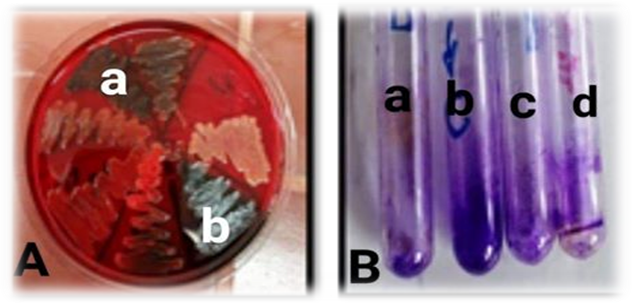 At first, production of biofilm formation for tested microorganisims was detected by inoculation on congo red agar (CRA) (BHI agar supplemented with 5 % sucrose and 0.8% congo red). A single colony of all tested bacteria were culturd overnight in the medium for 24 h at 37 °C. The plates were inspected for color of the colonies. Positive biofilm producers were indicated by black colonies with a dry crystalline consistency while non biofilm producers strains formed red colonies.