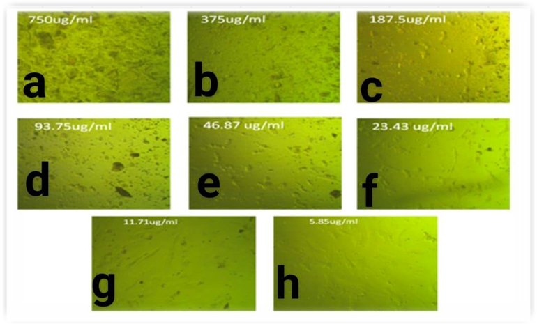 Fig. 10(A, B): Toxicity effect of cephalexin loaded CSNPs on WI-38 cells at different concentrations