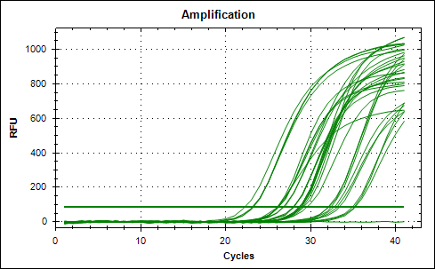 RT-PCR amplification stage was preceded in thermal cycle and was shown in graph to monitor with software Bio-Rad CFX Manager 2.1 (Hercules, California). Graphs were obtained in the form of amplification graphs, a standard curve, melting curve (melt curve) and melting peak curve. Graphs were used to evaluate the performance of RT-PCR amplification. Amplification curve was formed when the amplification process has begun and the use of this curve is to determine whether it contains the occurrence of amplification or not in a thermal cycler.