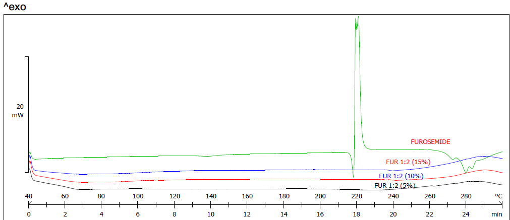 DSC study enables the quantitative detection of all processes in which energy is required or produced (i.e., endothermic or exothermic phase transformations). DSC thermogram of FUR shows it’s melting at 218 °C as presented in fig. 1.