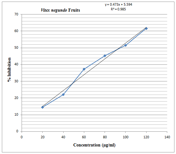 Fig. 4: DPPH radical scavenging activity of Vitex negundo Fruits extract