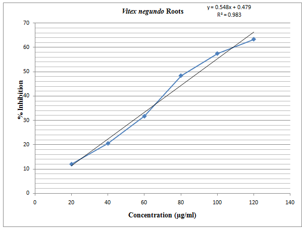 Fig. 5: DPPH radical scavenging activity of Vitex negundo roots extract