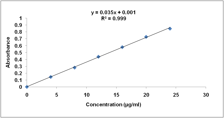 | S. No. | Concentration (μg/ml) | Absorbance | Standard deviation (n=3) |