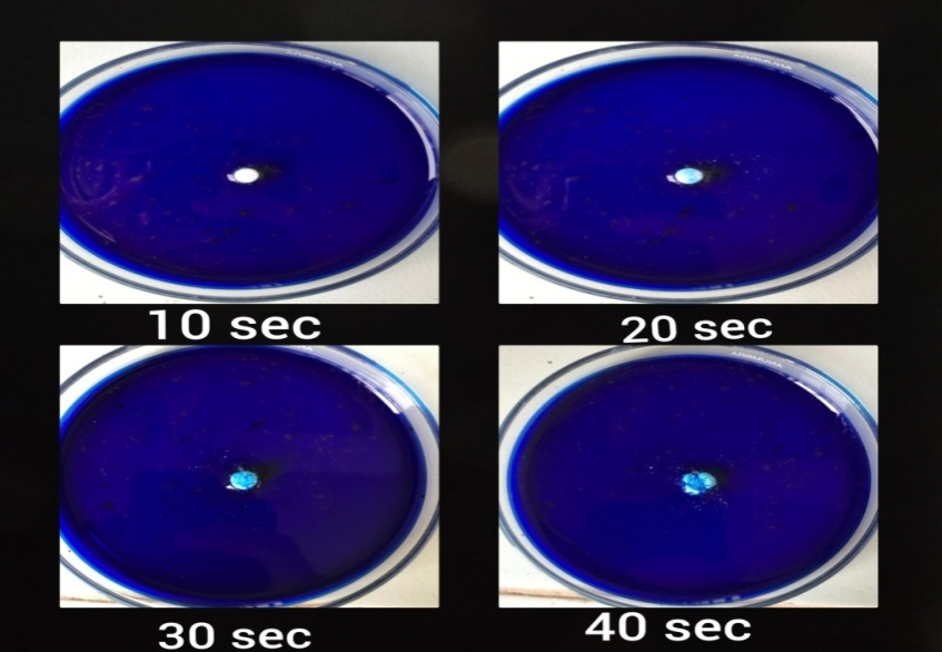 All codes of tablets were wetted within 40 sec (table 8); indicates the congenial porosity of the tablets. Further it enhances quick dissolution and disintegration. Fig. 8 represents the wetting time of code E.