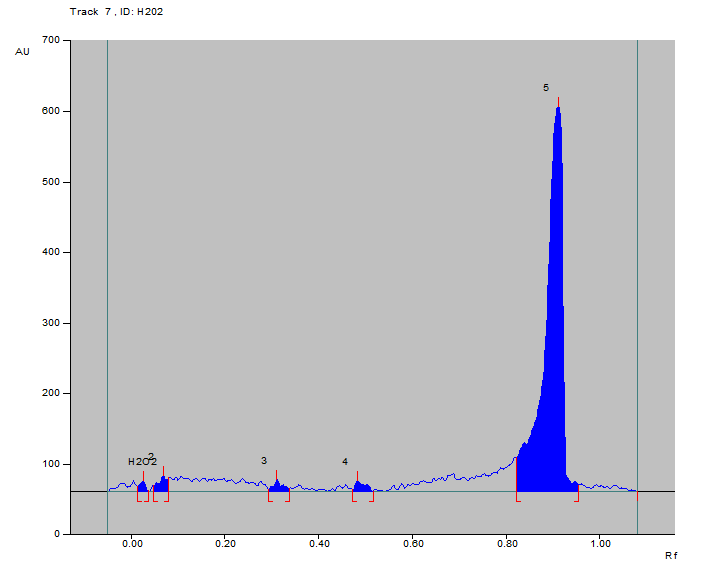 The 40 mg of metformin and 1 mg of alogliptin in 10 ml volumetric flask to add 1 ml of 0.1M 30% hydrogen peroxide and make up the volume with mobile phase then refluxed at 40 °C for 30 min. After completion of 30 min, about 1 ml of the above solution was taken, neutralized and diluted up to 10 ml with methanol. The resultant solutions were applied to TLC plates in triplicates [17].