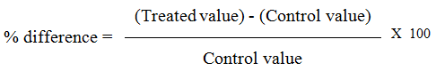In the present study, all the results are expressed as Mean ± S. E of the mean. Data were analyzed by one way analysis of variance (ANOVA) using the Statistical Package for the Social Sciences (SPSS) program, version 11 followed by least significant difference (LSD) to compare the significance between the groups [30]. The difference was considered significant when P value was > 0.05. The percentage difference that represents the percent of variation with respect to the corresponding control group was also calculated using the following formula.