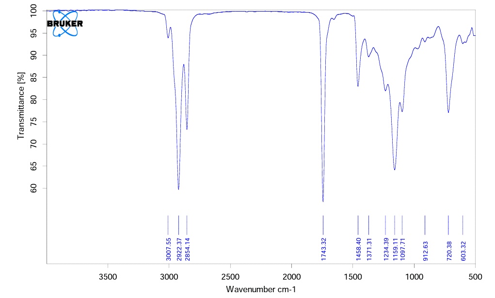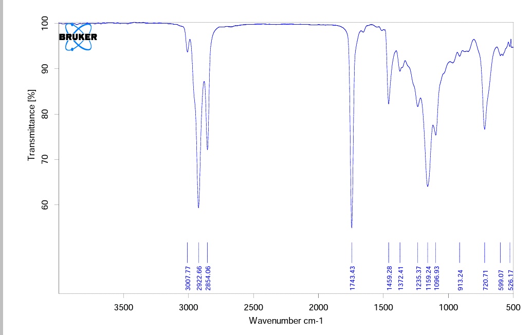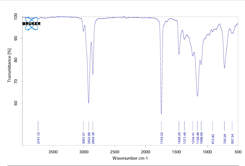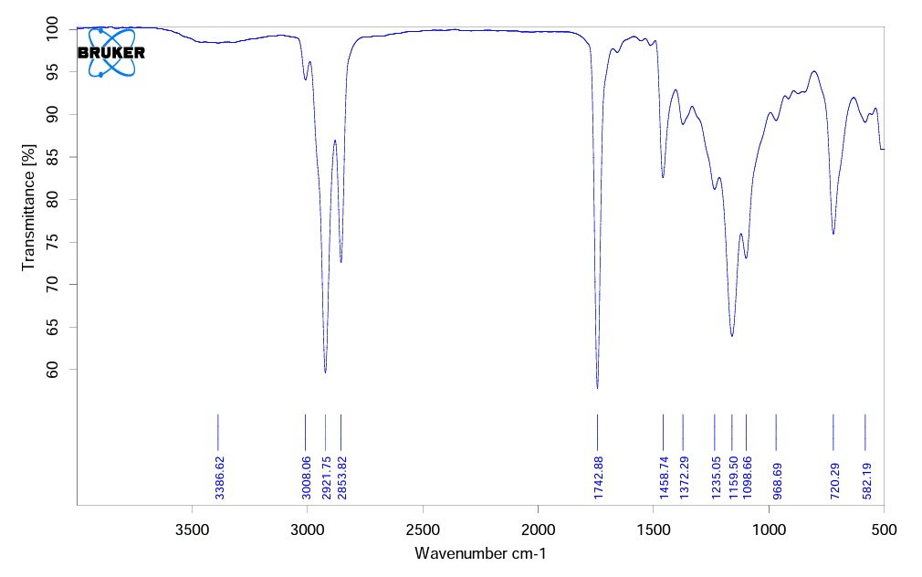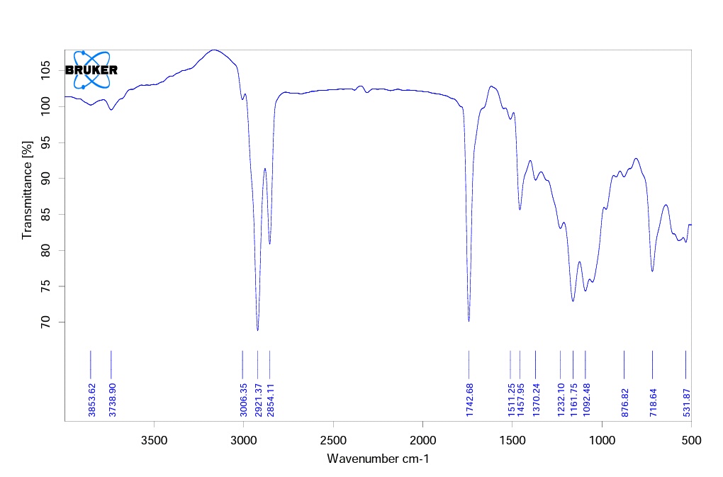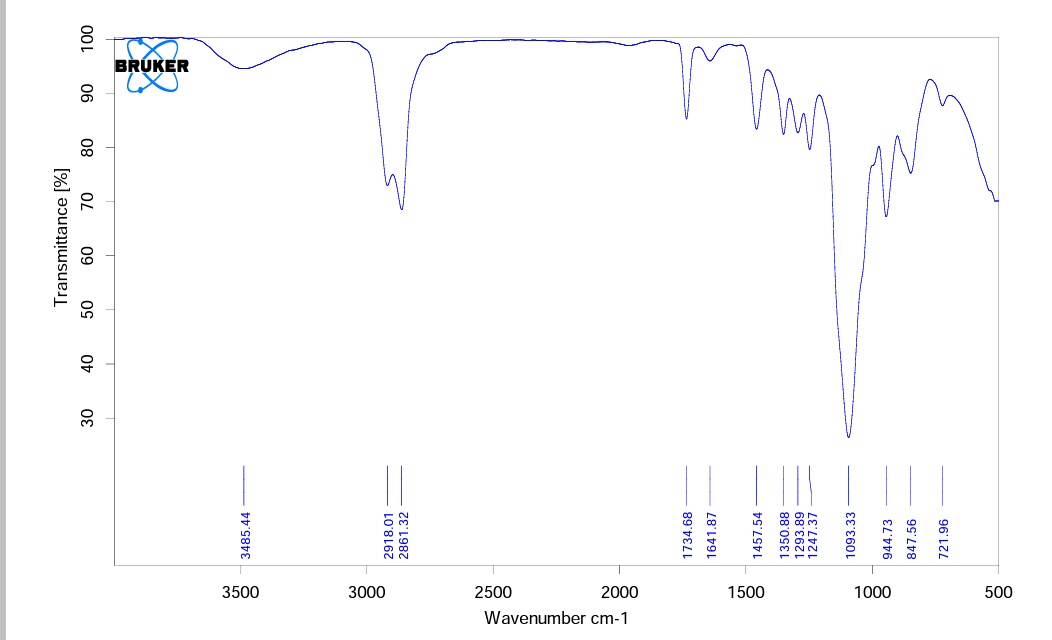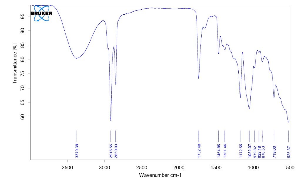 Infrared spectroscopy of raw materials, blank and drug-loaded oleogels were scanned by using FT-IR spectroscopy(Bruker, Alpha-T) in attenuated total reflectance (ATR) mode in the range of 4000-500 cm-1.