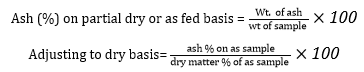 NFE on dry basis = 100%-(% ash on dry basis+% crude fiber on dry basis+% crude fat on dry basis+% protein on dry basis)