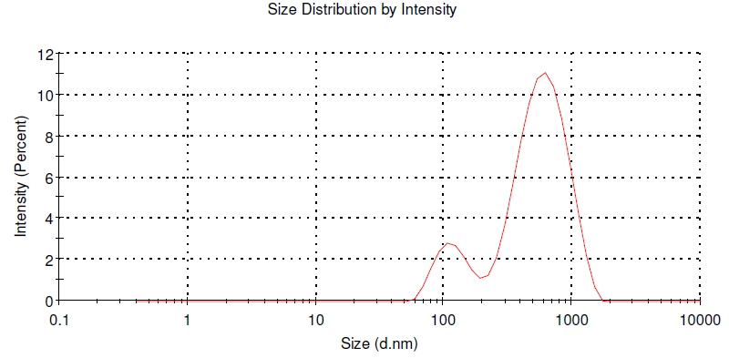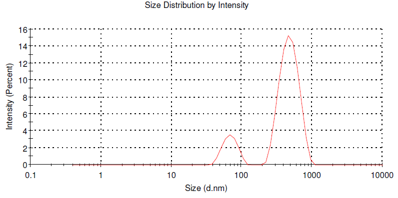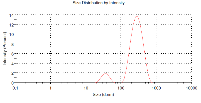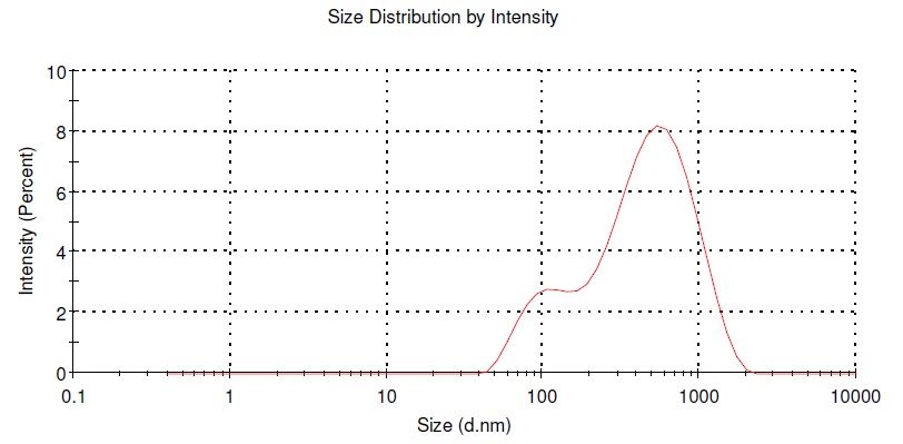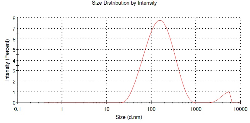 Dynamic light scattering (DLS) (Malvern, Autosizer 4700) was used to measure the hydrodynamic diameter and size distribution (polydispersibilty index, PDI = (μ2) / τ2) (Chu et al., 1991). All DLS measurements were done with a wavelength of 532 nm at25o c with an angle detection of 90o C. The Zeta potential of nanoparticles was measured on a zeta potential analyzer (Malvern Zetasizer, USA). For zeta potential measurements, samples were measured in the automatic mode. All measurements were performed in triplicate.