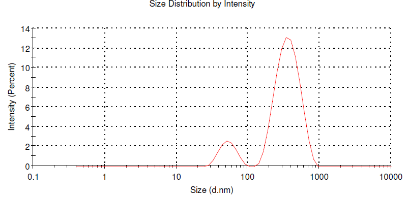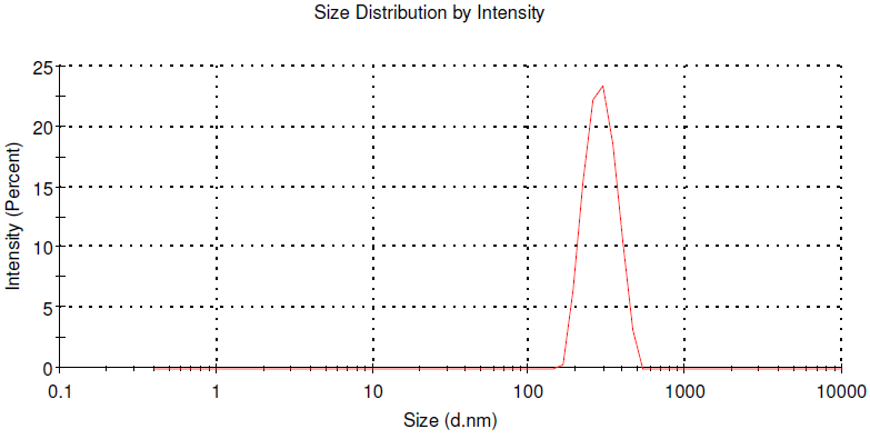 Fig. 3: Particle size of MCS 1500 (particle size 298 nm)
