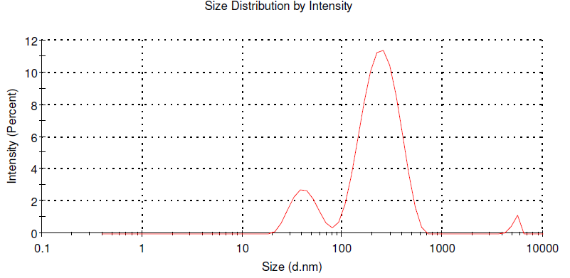 Fig. 9: Particle size of MCS 2 (particle size 259 nm)