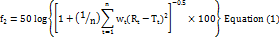 Where Rt is the percentage of released drug for a reference batch at time point t, Tt is the percentage of released drug for the test batch, n is the number of pull points collected during the in vitro release test, Rt and Tt are the cumulative percentages release at the selected time point of the two tested formulae. FDA has set a public standard of ƒ2 value of 50-100 to indicate similarity between two dissolution profiles [39].