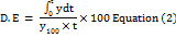 Khan and Rhodes [40] used the trapezoidal rule to calculate the area under the dissolution curve at the time (t) to obtain the dissolution efficiency (D. E.) expressed as a percentage of the area of the rectangle described by 100% dissolution in the same time [41]. (D. E.) is defined as follows: