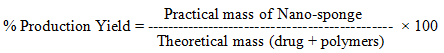 The production yield (PY) can be determined by calculating initial weight of raw materials used in the formulation and final weight of dried mass Nano-sponge [15].