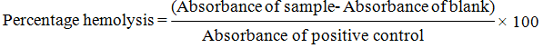 | Nno-sponge drug Conc. (µg/ml) | Absorbance (at 540 nm) | Hemolytic activity % |