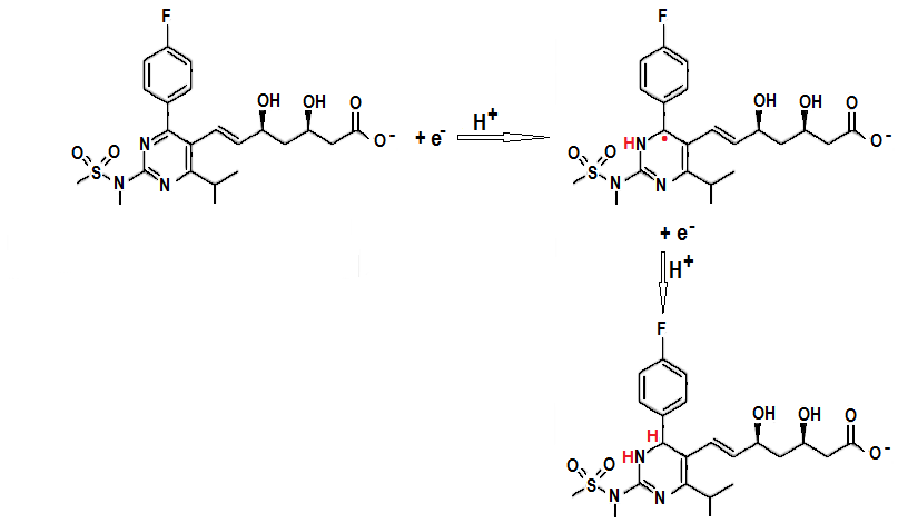 Rosuvastatin calcium (RSV) C44H54CaF2N6O12S2 or (C22H27FN3O6S)2Ca, is a synthetic lipid lowering agent that is widely used to treat hypercholesterolemia and hyperlipidemia, mol. mass 1001.14 g (Scheme1), while Rosuvastatin is C22H28FN3O6S and its mol. mass 481.539 g. Rosuvastatin calcium is a white amorphous powder that is sparingly soluble in water and methanol, and slightly soluble in ethanol [1-3]. Literature survey revealed that HPLC [4-6], capillary zone electrophoresis [7], spectrophotometry [8-11] and electrochemical methods [12,13] are available for Rosuvastatin analysis in pharmaceuticals either single or combine with other drugs. The polarographic and voltammetric analysis was successfully applied for determination some drugs as atorvastatin [14-16], gatifloxacin [17], carbinoxamine maleate [18], dipyrone [19] and lomefloxacin [20].