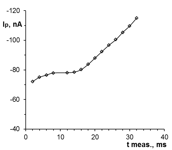 The effect of negative pulse amplitude between 0 to -100 mV on Ip showed that, Ip slowly increases with increasing amplitude until -30 mV then becomes a linear increase until -90 mV after that deviate from the linear, while Ep increasing of positive value.