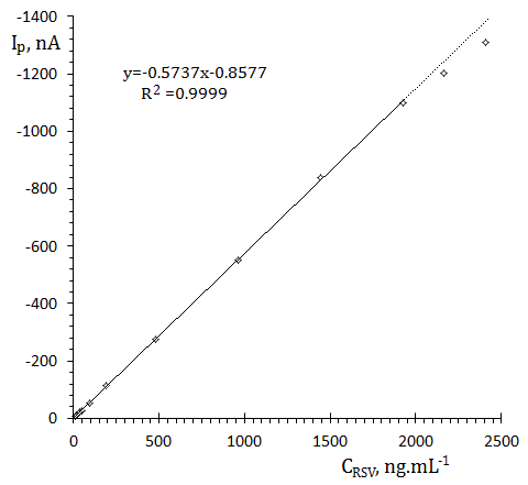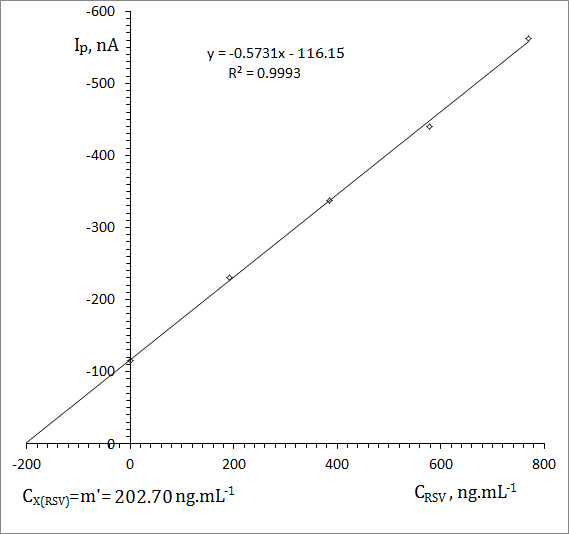 *y= nA, x= concentration of RSV (ng. mL-1)= m' = intercept/slope.