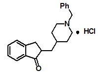 Donepezil hydrochloride (fig. 1, 5,6-dimethoxy-2-[[1-(phenyl methyl)-4-piperidinyl] methyl]-2,3-dihydro-1H-inden-1-one hydrochloride) [1] is an acetyl cholinesterase inhibitor that inhibits the acetyl cholinesterase enzyme from breaking down the acetylcholine, thereby increasing the level and duration of action of acetylcholine, a neurotransmitter acetyl cholinesterase enzyme from breaking down the acetylcholine, thereby increasing the level and duration of action of acetylcholine, a neurotransmitter [2]. It binds to acetyl cholinesterase via hydrogen bonding and is easily hydrolyzed in biological fluid, thus the duration of enzyme inhibition at the receptor level is very short, and hence therefore referred to as 'reversible’. It is used mainly for the treatment of Alzheimer’s disease where it is used to increase cortical acetylcholine [2].