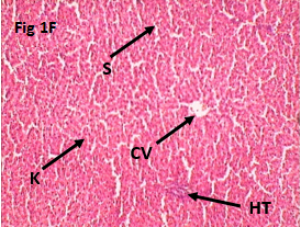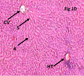 The liver specimen isolated from treated and control groups was fixed in 10% buffered neutral formalin for 24 hrs and then stained with haematoxylin-eosin for photomicroscopic observation of histopathological changes occurred in the livers.