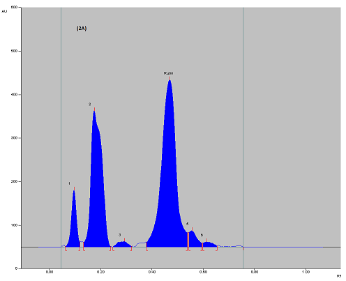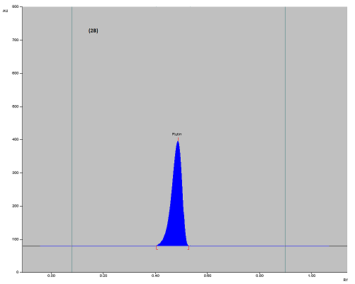 One of the spot showed an identical Rf value with that of standard rutin (Rf-0.47) when visualized under UV-250 nm fig. 2(a-b).