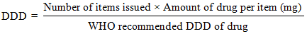| Drugs | Dose (mg) | n(%) | WHO ATC DDD (mg) | Mean DDD in mg(DDD) | Median DDD in mg(DDD) |