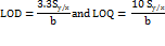 Where “Sy/x” is the standard deviation of the regression line/residuals and “b” is the slope of the calibration curve.