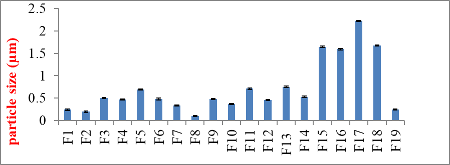 Particle size was selected to be one of the dependent variables, and the PDI value gave an indication for the homogeneity of the preparations. PDI of all the prepared formulae was found to be (0.375-1).